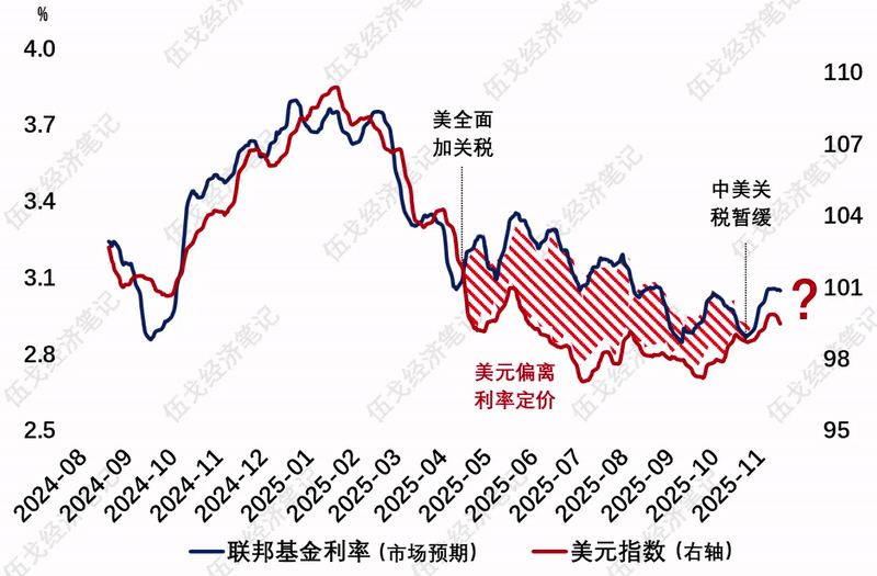 展望明年,随着中期选举临近,美国内因素将强化牵制特朗普,关税冲击更趋收敛。去美元化尚未逆转,但降息路径的曲折性或指向短期美元的双向波动。科技对市场风险偏好的影响或未终结。当然,我国微观主体感受最直接的仍是国内总需求及物价的改善与否。