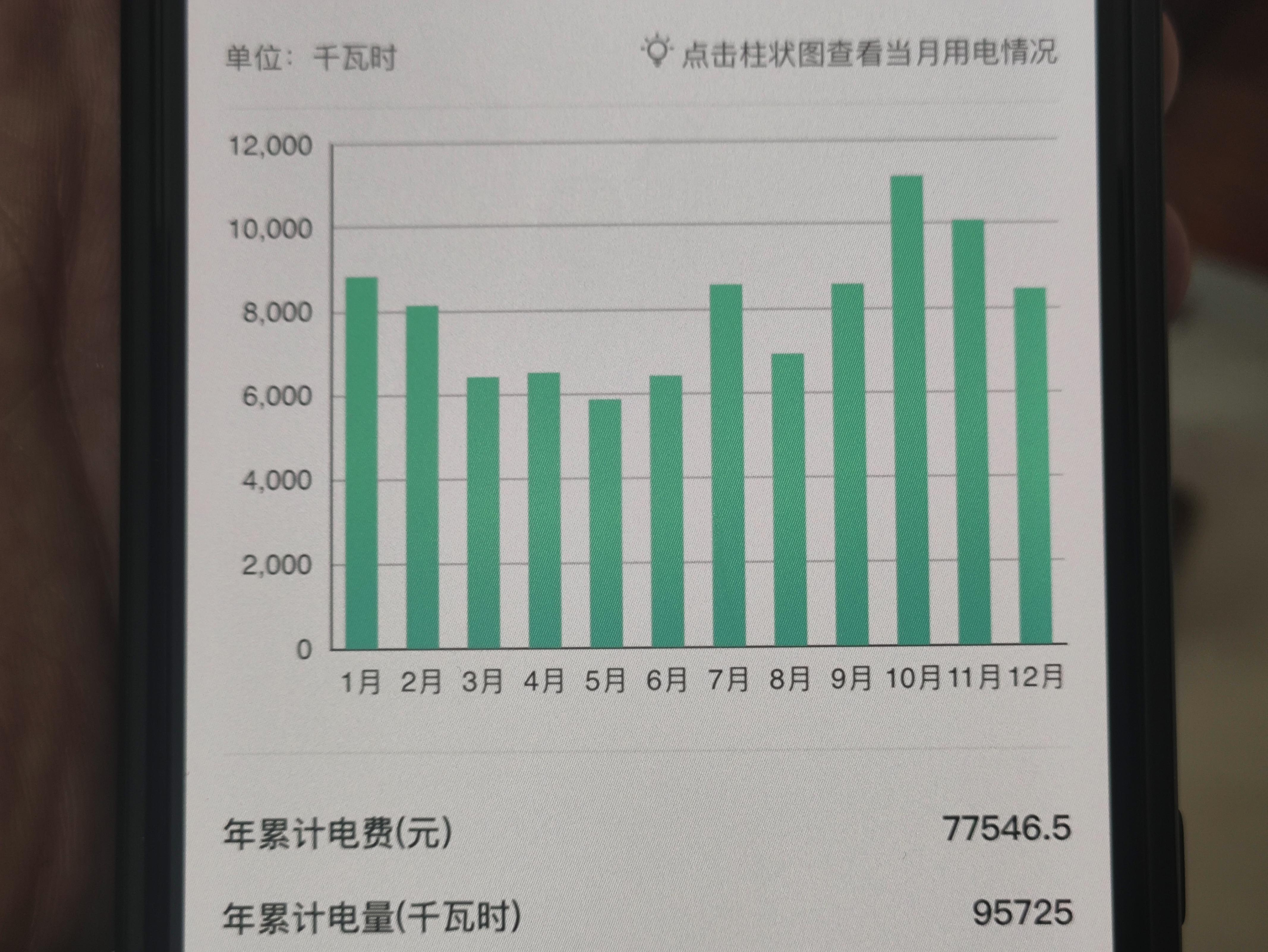 “抽水吸金”最大的成本是电费。新京报记者通过相关途径查询发现,清河沿村多位村民家中用电量异常偏高,其中一户村民家里2024年全年用电量约9.6万度,电费7.7万余元,有的月份单月用电量就超过1万度,而当地普通村民家里,通常月用电量只有100度左右,相差近百倍。
