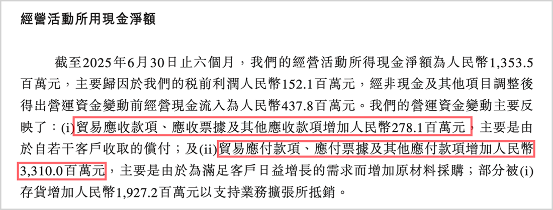 今年上半年,海辰储能经营现金流转正为13.53亿元,但仔细分析发现,这一变化主要得益于应付账款的大幅增加,提升了33.1亿元,而同期应收款项仅增加2.78亿元。