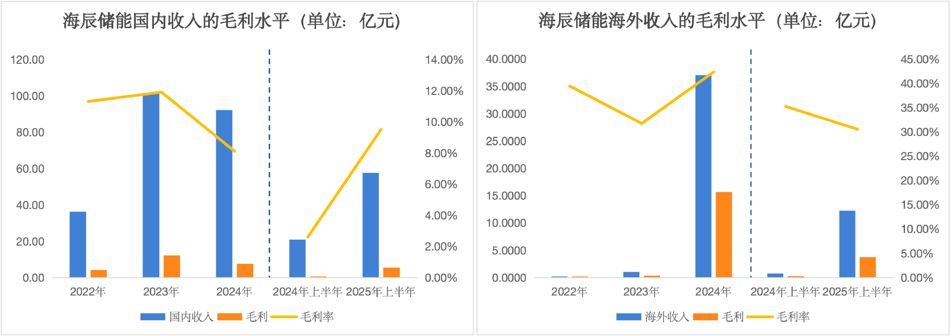 得益于海外市场对高品质、一体化解决方案的需求增长,海辰储能海外业务的毛利率在2024年/2025H1达到了42.3%/30.5%,而同期国内仅有8.1%和9.5%,海外业务贡献了绝大部分盈利。