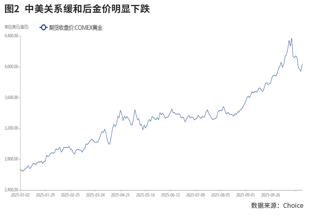 从黄金来看,避险情绪的下降或让金价上行受阻。自10月下旬中美经贸关系缓和的预期升温后,金价已经出现了一定的调整。COMEX金价一度从近4400美元的历史高点快速跌破4000美元。中信建投证券认为,此前金价最能表达不确定性、美国信用裂痕、美国经济衰弱这些叙事。而如今市场需要对金价重新审视了,在2026年的资产定价中,黄金或许是最先迎来反转的资产。