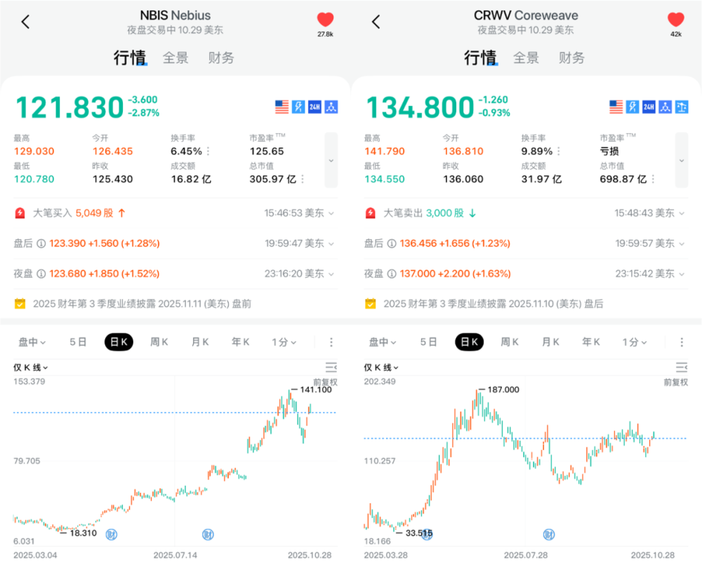 • 定位:将Nebius和CoreWeave视为高风险、高波动的卫星仓位,而不是核心持仓(你不能在不持有英伟达的情况下,直接买这两支,这个逻辑不对)。它们更适合波段操作或作为对英伟达的“杠杆补充”,而非长期“价值投资”。