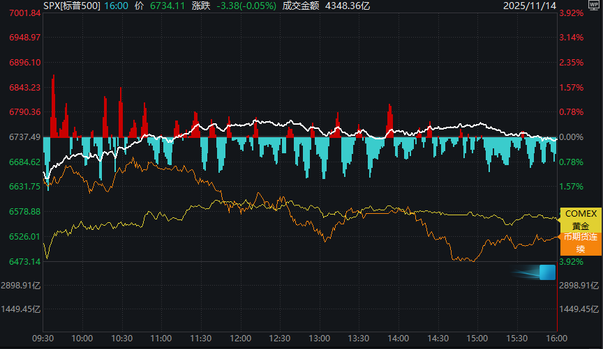 上周五交易时段,标普500指数一度短暂转涨后最终小幅收低,而比特币和黄金价格全天下跌。此前一日该股指大幅下挫,使其11月整体呈现亏损态势。
