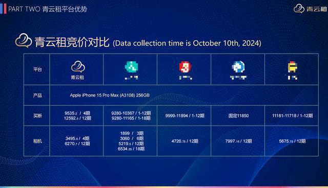 宣传资料中,青云租与其他租机平台竞价对比。受访者供图