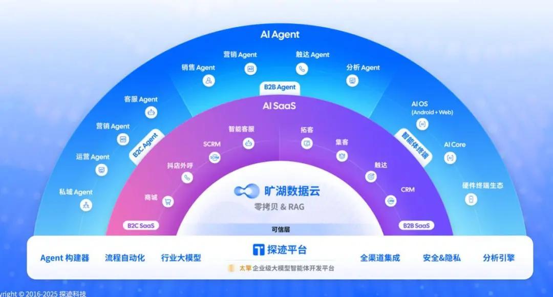 收购方探迹科技作为数字生产力领域的领军企业,自主研发了企业级大模型智能体开发平台“太擎”及数据云底座“旷湖”,构建起覆盖全球数亿企业的知识图谱体系。其核心产品Futern销售智能体平台,通过自然语言处理技术实现目标客户特征智能解析,可自动生成高精度潜在客户清单,并基于企业产品特性精准推荐匹配度超90%的采购商,彻底颠覆传统出海企业的客户开发模式。