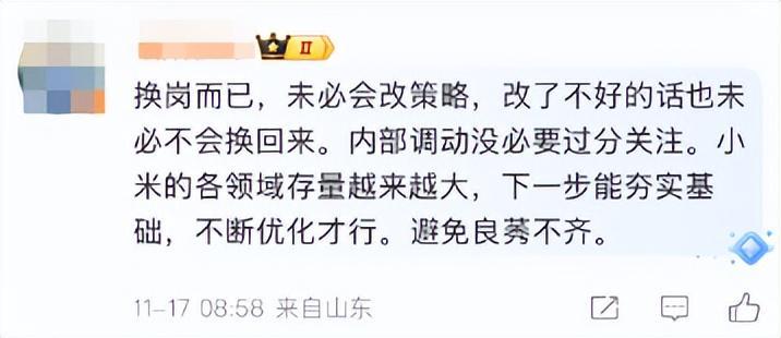 作为小米公关负责人,王化此前多次在个人微博上针对网络不实报道进行辟谣和回应。对于此次换岗传闻,王化本人尚未公开表态,但相关消息已引发网友热议。有网友评论称:“换岗而已,未必会改策略,改了不好的话也未必不会换回来。内部调动没必要过分关注。”也有业内人士指出,若王化的岗位发生变化,小米的对外宣传策略或将迎来调整。