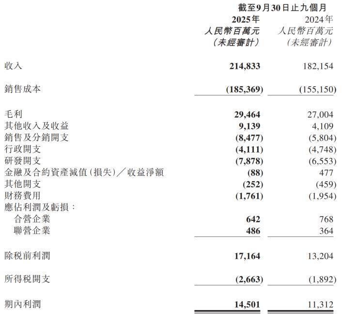 2025年三季度财报显示,奇瑞实现营业收入2148.33亿元,同比增长18%;净利润145.01亿元,同比增长28%。但深入分析发现,其利润结构存在严重隐患:期内"其他收入及收益"占比高达37%,较2024年同期提升12个百分点,这部分收入主要来自政府补助和资产处置收益。