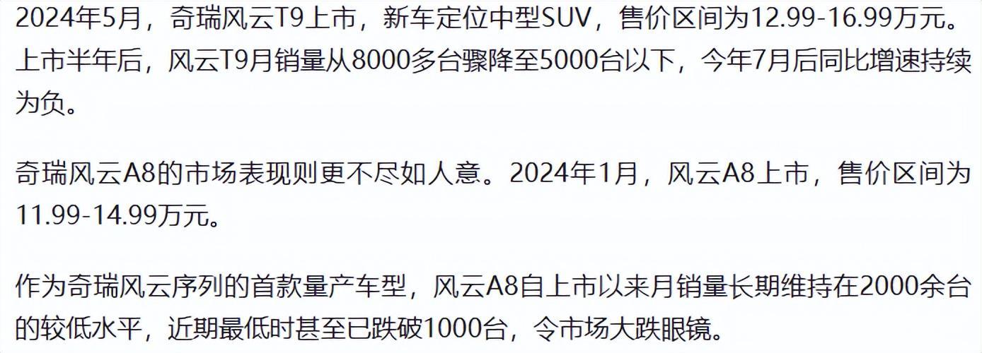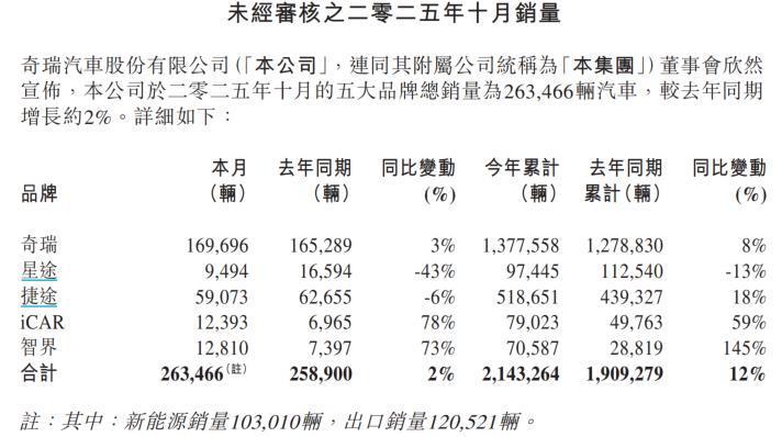 2025年前10月,奇瑞累计销量214.3万辆,同比增长12%,但品牌分化严重:核心品牌奇瑞增速放缓至8%,星途品牌同比下滑43%,捷途品牌下降6%,仅iCAR和智界保持增长。这种结构性失衡在新能源领域尤为明显:风云系列月销量从峰值8000台跌至不足5000台,iCAR品牌市占率不足1.2%。