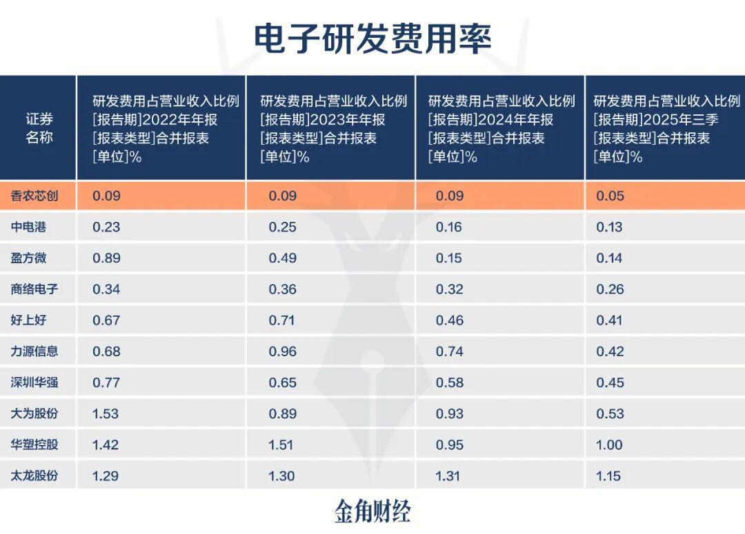 但现实却异常残酷。2022-2025年前三季度,香农芯创研发费用率在申万电子行业488家上市公司中持续垫底,今年前三季度研发费用仅1200万元,在400余家同行中排名倒数第19。这种研发投入强度,与其宣称的"打造国产存储龙头"目标形成鲜明对比。