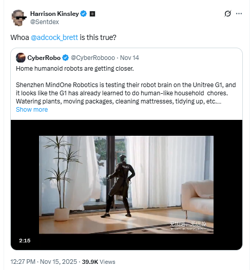 视频的火爆迅速引来大洋彼岸的关注。美国网友在社交平台X上@Figure公司创始人布雷特·爱德考克(Brett Adcock)求证,这位CEO直接泼冷水:
