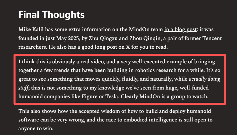 爱德考克的焦虑或许正源于此:他看到的不仅是一个视频的真假,更是一个可能颠覆行业的“安卓时刻”正在中国萌芽。无论论战结果如何,中国公司已以惊人速度从硬件制造向软件智能全链条进军,全球人形机器人竞争正进入白热化阶段。