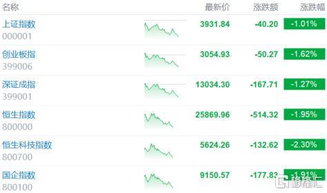 港A股市场同样承压,低开低走后午后跌幅扩大。创业板指、深成指盘中短暂翻红后再度转跌,恒生科技指数跌幅超2%,恒生指数与国企指数跌幅均超1%,市场多空博弈激烈。