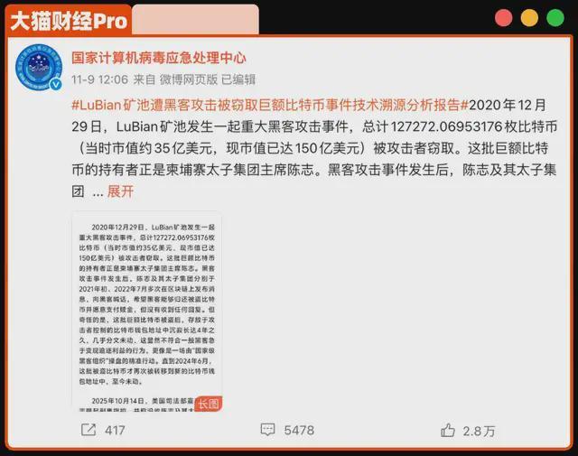 2020年12月29日,Lubian矿池遭遇黑客攻击,短短2小时内,127272枚比特币被神秘转走,按当时价格计算,这些比特币价值高达35亿美元(约合250亿人民币)。