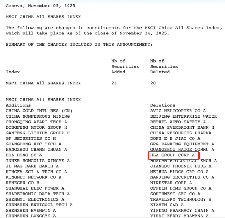 (MSCI公布了11月指数审核变更结果)