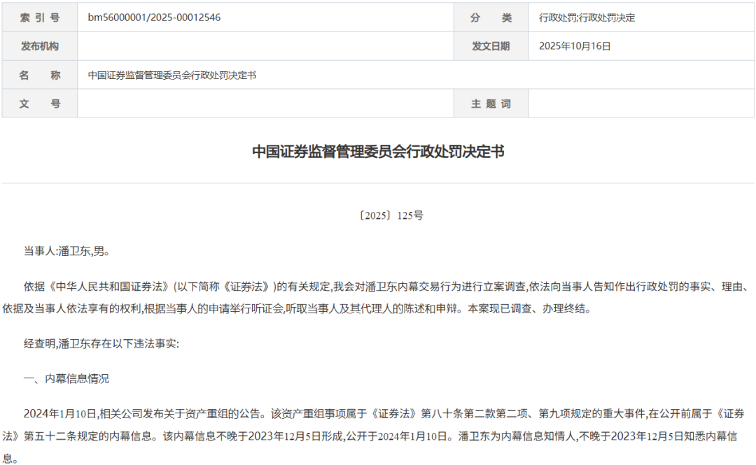 证监会认定,该行为显然具备内幕交易特征,并在调查中发现潘卫东“存在躲避推脱等不配合执法人员询问等情形”。最终,尽管其交易行为亏损,但仍被处以500万元罚款,并被要求处理非法持有股份。