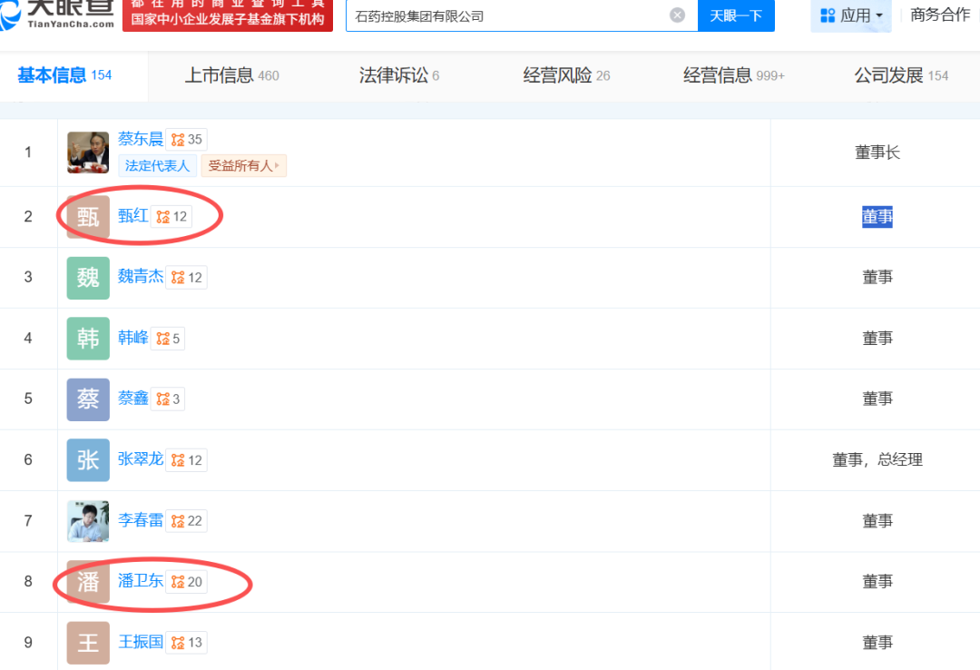 值得注意的是,四名当事人与新诺威或石药集团均有密切关系。潘卫东自2006年10月起担任石药集团执行董事,先后在石药集团多个子公司担任董事。2017年1月起,潘卫东出任新诺威董事长,直到2024年9月因工作变动辞任。杜英曾为新诺威董事会秘书兼财务总监,于2023年4月因到龄退休离任。张赫明曾担任新诺威非独立董事,于2022年12月因个人原因辞任。据天眼查,石药控股董事名单中,甄红和潘卫东的名字赫然在列。