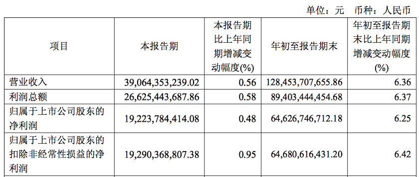 财报数据显示,2025年前三季度,贵州茅台实现营业总收入1309.04亿元,同比增长6.32%;实现归母净利润646.27亿元,同比增长6.25%。尽管整体数据保持增长,但第三季度表现却令人担忧:单季实现营业收入390.64亿元,同比微增0.56%;归母净利润192.24亿元,同比微增0.48%。这一增速与2024年第三季度(营收增速15.29%、净利润增速13.23%)形成鲜明对比,更创下近十年单季增幅新低。
