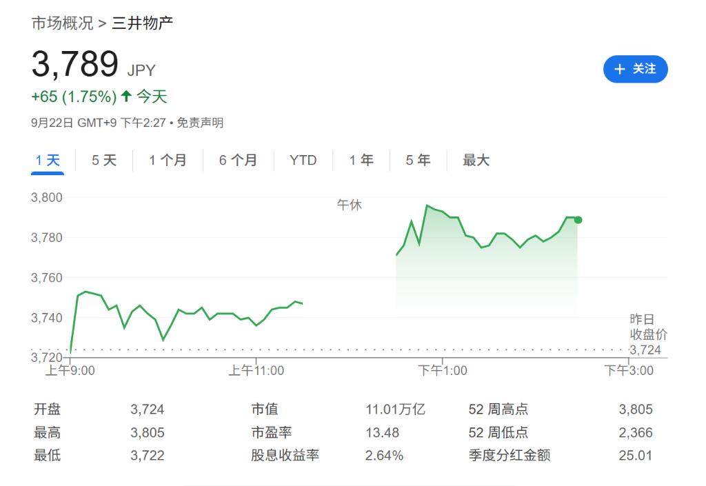 消息公布后,日本资本市场迅速作出反应。三井物产股价在早盘涨势基础上进一步扩大,盘中一度上涨2.2%,最终收涨1.75%。与此同时,三菱商事、伊藤忠商事、丸红株式会社和住友商事等日本五大商社的股价,周一也普遍呈现走高态势。