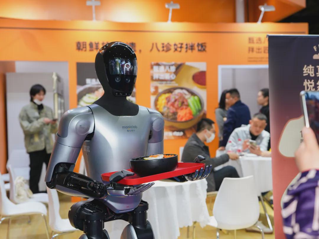 展会现场的科技感令人耳目一新:AI机器人端着试吃盘自主巡航,吸引观众纷纷拍照传播。但真正的数字化杀招藏在后台——智能订货系统已实现7天培训上岗,未来将集成动态定价与千人千味推荐功能,将数字化基因深度植入运营体系。