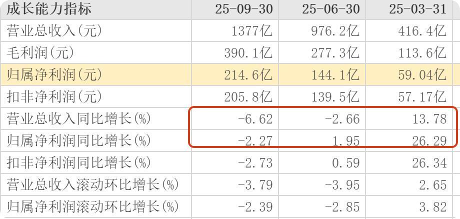 近期发布的三季报显示,前三季度格力营收1377亿元,同比下滑6.62%;净利润214.6亿元,同比下滑2.27%。单季度来看,前三个季度营收分别为416.4亿元、559.8亿元和400.3亿元,同比增幅分别为13.78%、-12.11%、-15.06%,第二季度和第三季度营收下滑明显。前三个季度的净利润分别为59.04亿元、85.08亿元和70.49亿元,同样在第二季度和第三季度分别下滑了10.07%和9.92%,近两个季度营收和净利润均出现了不小的下滑。