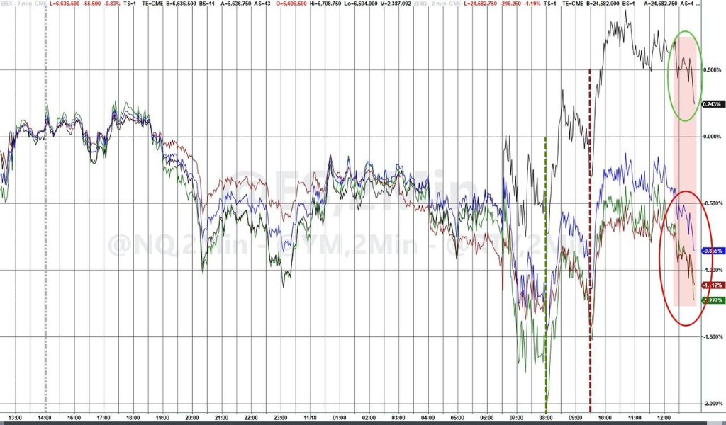 AI驱动的牛市正遭遇一场前所未有的现实考验。随着市场对AI泡沫的担忧日益加剧,周二美股三大指数再度集体收跌,标普500指数已连续四个交易日呈现下跌态势。以英伟达为代表的高估值科技股和芯片股普遍承压,纳斯达克综合指数也未能幸免,下跌1.2%。