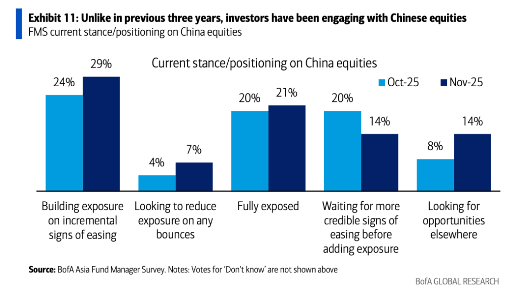 具体到中国市场,调查揭示了投资者行为的三大特征:21%的受访者正在建立新仓位,14%已完成全面配置,另有14%正积极寻找入场机会。这种“建仓-持有-加仓”的梯度布局策略,反映出机构投资者对中国资产长期价值的认可。