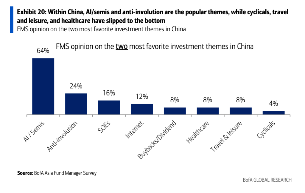 在投资主题选择上,AI/半导体板块以64%的受访者青睐度成为绝对焦点,反内卷概念(24%)位居次席,而周期性股票、旅游休闲和医疗保健等传统板块则关注度较低。这种结构性偏好,与全球科技革命浪潮和中国产业升级战略高度契合。