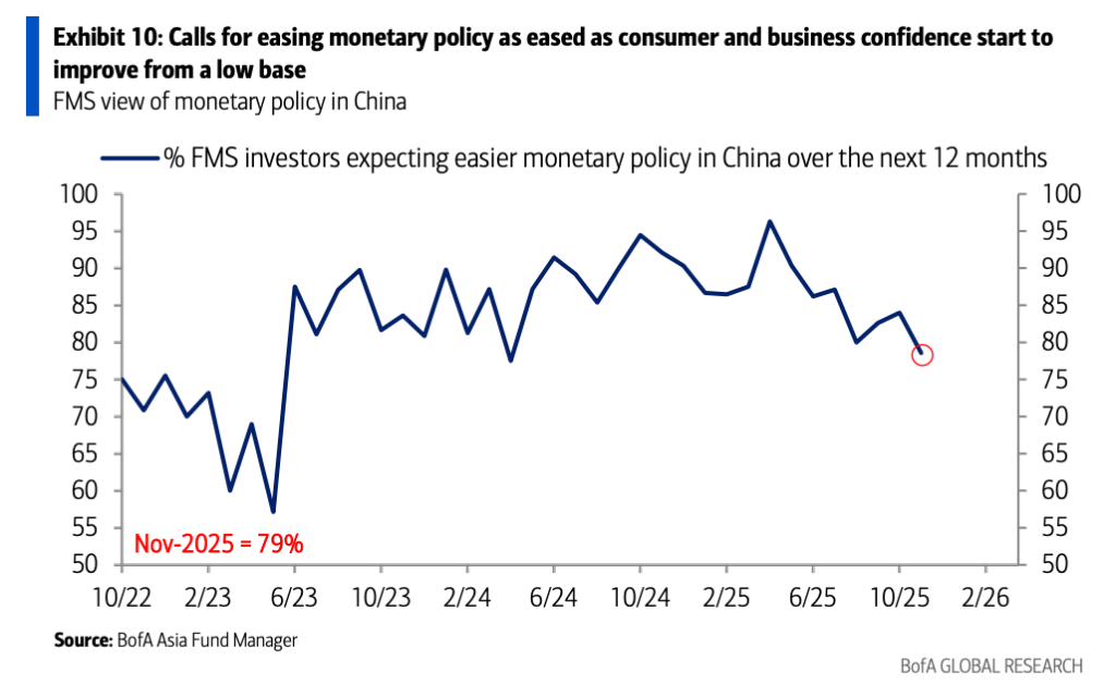 值得注意的是,尽管79%的受访者预期中国货币政策将进一步宽松,但家庭风险偏好减弱的现象也引发关注。数据显示,可选消费支出与投资行为同步回落,反映出居民部门在资产配置上更趋谨慎。这种“政策宽松与风险偏好分化”的矛盾,将成为影响市场走势的关键变量。
