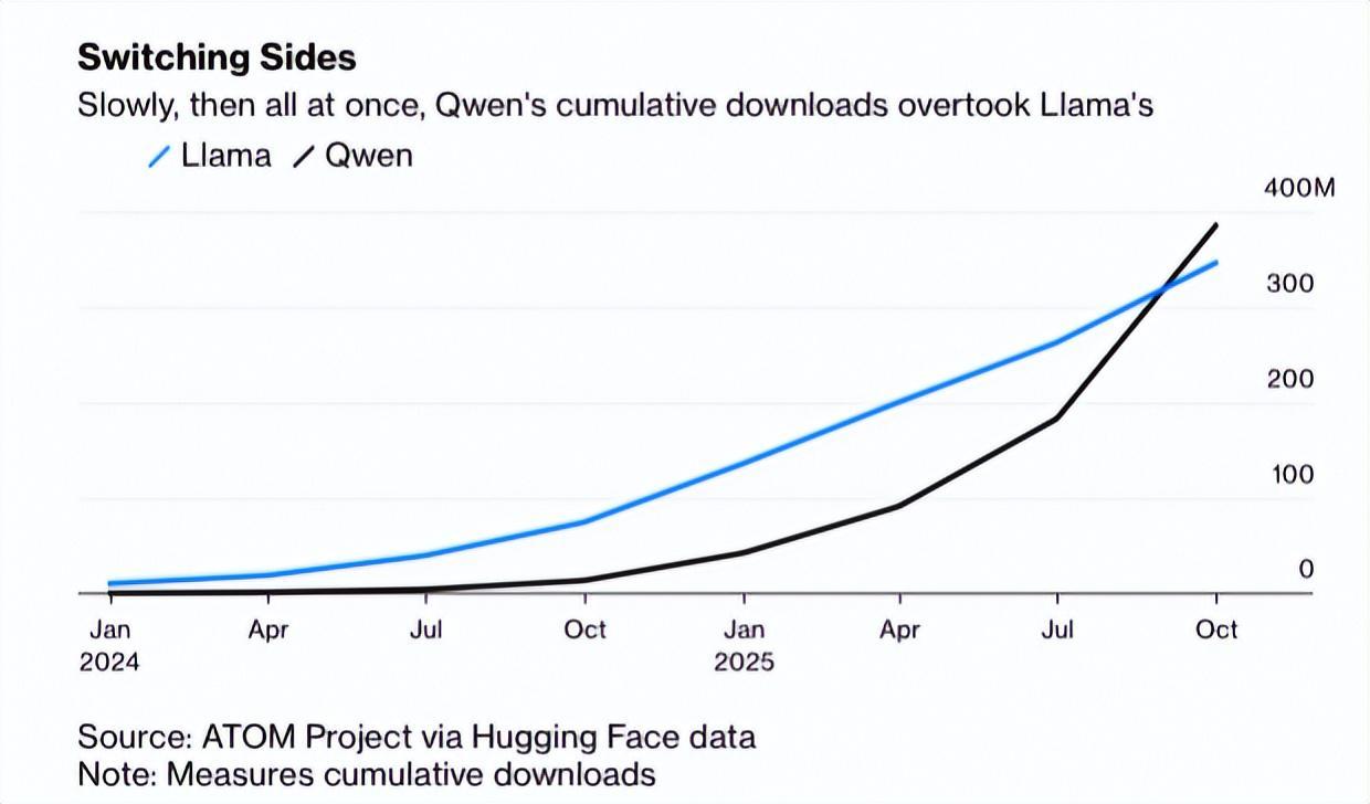 Qwen下载量超过Llama。来源:受访者