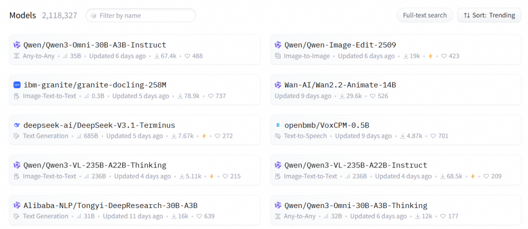 云栖大会阿里AI七连发,通义占据HF全球模型榜单前十中的七席。