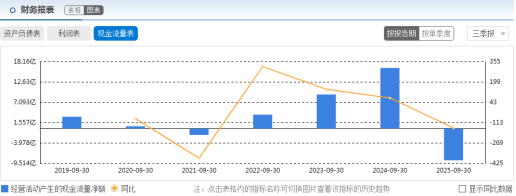 自2020年上市以来,安克创新经营性现金流净额始终为正,2024年末更达24.75亿元历史峰值。但2025年画风突变:前两个季度分别净流出2.88亿元、8.45亿元,第三季度虽短暂转正至2.67亿元,前三季度整体仍净流出8.65亿元,同比下滑152.38%。这一数据,甚至超过2021年前三季度净流出的规模。