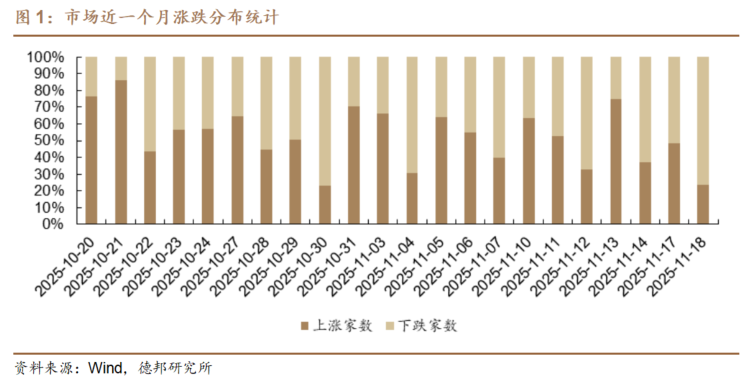 外部因素扰动持续,中长期仍看好市场。近期市场连续三个交易日调整,我们认为主要受外部因素扰动:1)近期美联储态度偏鹰,市场担忧12月减息概率降至五成,且对2026年降息预期可能过于乐观,对流动性层面产生一定影响,需关注后续美国通胀数据,若美国核心PCE通胀回落超预期,降息预期可能重启,美元走弱或将缓解A股外资流出压力;2)前期日本方面的挑衅言论催化了中日关系的紧张局势,对市场风险偏好产生一定影响。虽然短期市场调整,但我们认为中长期仍将延续牛市格局,建议关注政策对经济数据支持力度的变化。建议维持“红利&微盘与科技为代表的产业趋势板块”综合配置思路。
