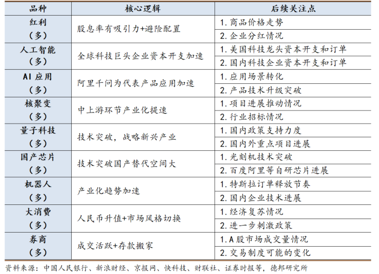 权益市场:近期美联储降息预期、中日关系等外部因素影响较大,市场短期或面临一定压力,但中长期上行趋势不改,建议均衡配置红利、微盘、产业趋势板块,关注政策驱动及国际大宗品价格。