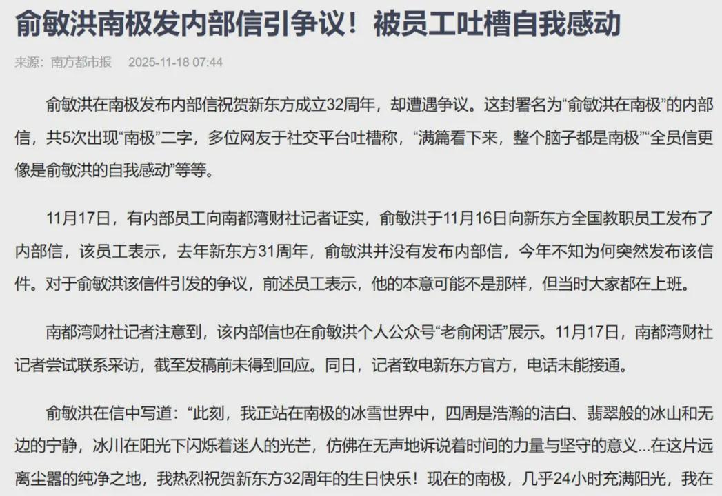 俞敏洪的南极鸡汤,虽然来自遥远的南极,但在这个寒冷的冬天,却显得格外冰冷。
