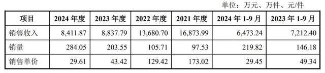 在对北交所的《回复函》中,爱得科技表示,脊柱类产品近年来收入下降主要受集采政策执行的影响,产品销售单价出现明显下滑,从2022年的129.42元/件降至2024年的29.61元/件,降幅达77.12%。不过集采后实现了“以量补价”,脊柱类产品的年销量从2022年的105.71万件涨至2024年的284.05万件,提升近两倍。