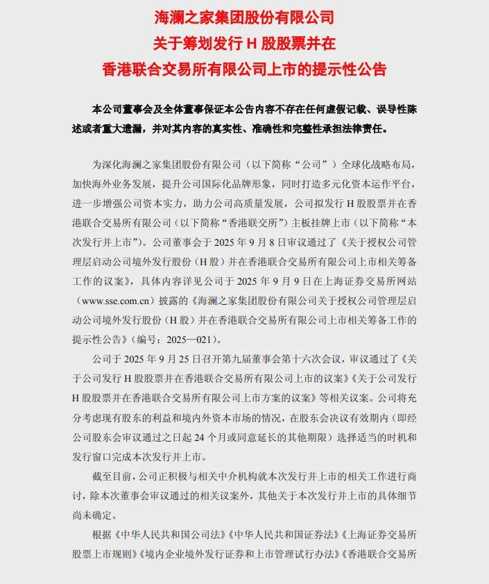 面对国内市场业绩增长乏力的困境,海澜之家将目光投向了海外。9月,海澜之家发布公告称,为深化公司全球化战略布局,加快海外业务发展,提升公司国际化品牌形象,同时打造多元化资本运作平台,进一步增强公司资本实力,助力公司高质量发展,公司拟发行境外上市外资股(H股)股票并申请在香港联合交易所上市。