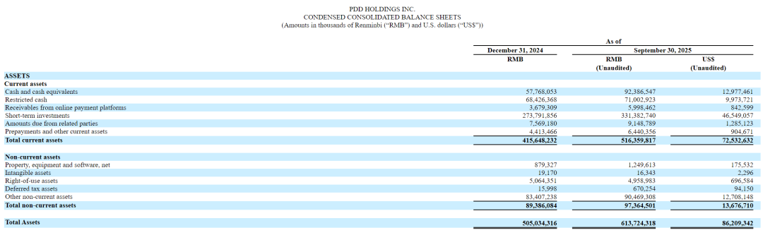 截至2025年9月底,拼多多手上持有的现金及短期投资等,高达4238亿,比2024年底又多了922亿元。