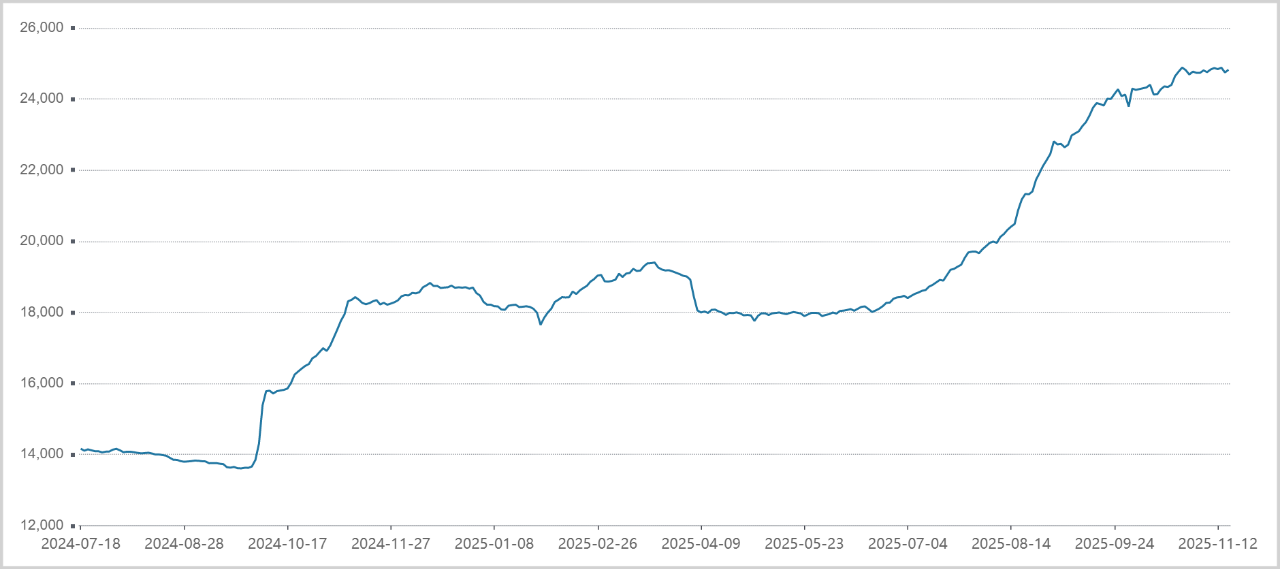 历史规律显示,A股趋势行情多与美联储降息周期同步。2020年3月至2021年2月,美联储扩表5万亿美元,推动全球风险资产上涨,A股蓝筹股出现超级抱团行情。本轮行情虽由国内政策触发,但2024年9月美联储开启降息周期(累计降息100BP)为国内政策提供了操作空间。随着2025年9月、10月连续降息,全球流动性宽松格局确立,A股上行趋势获得宏观层面支撑。
