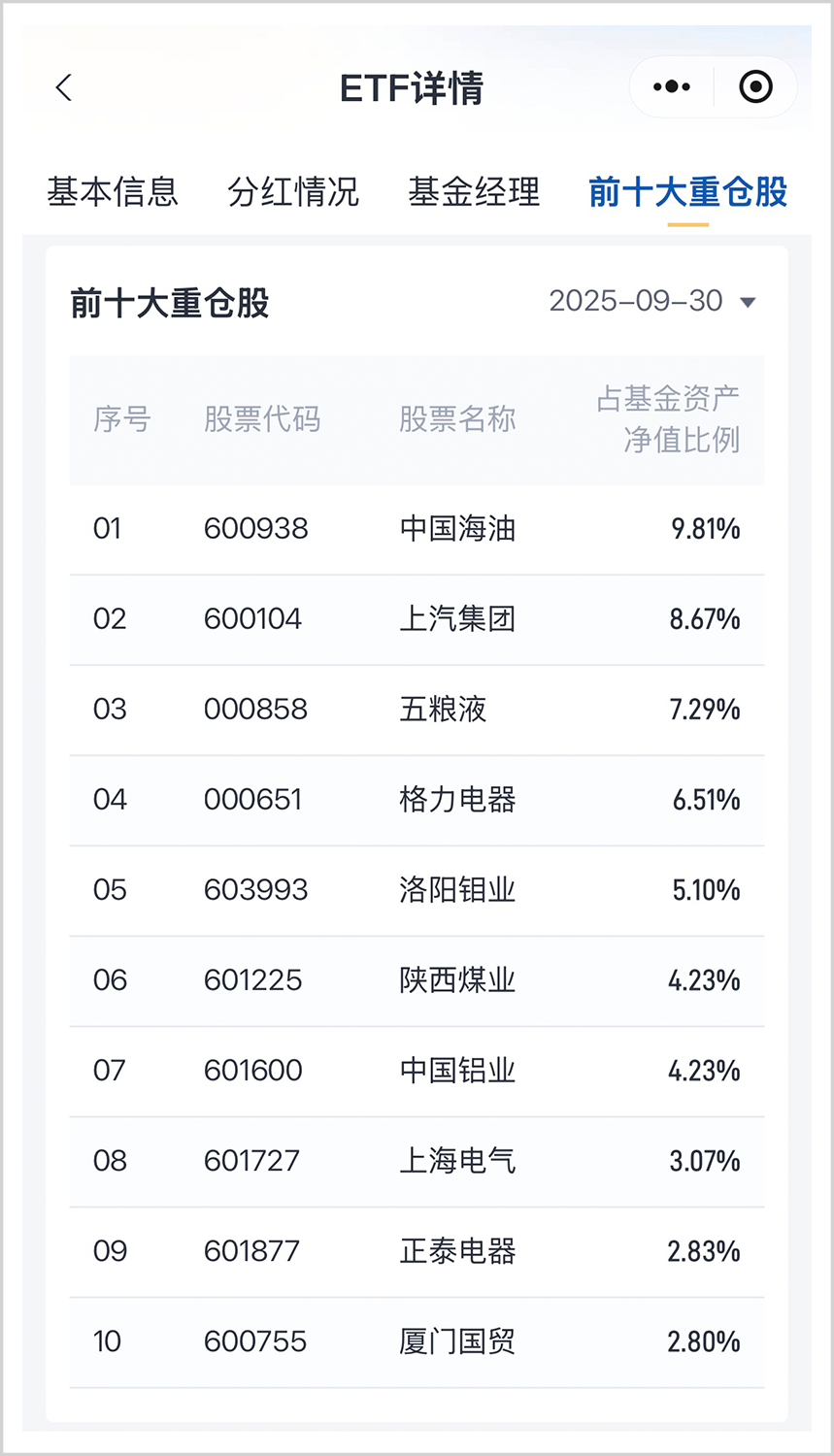 对于希望一揽子配置资源红利行业的投资者,自由现金流ETF易方达(159222)值得关注。该基金三季度末前十大重仓股涵盖中国海油、洛阳钼业、中国铝业等龙头,为投资者提供了便捷的配置工具。