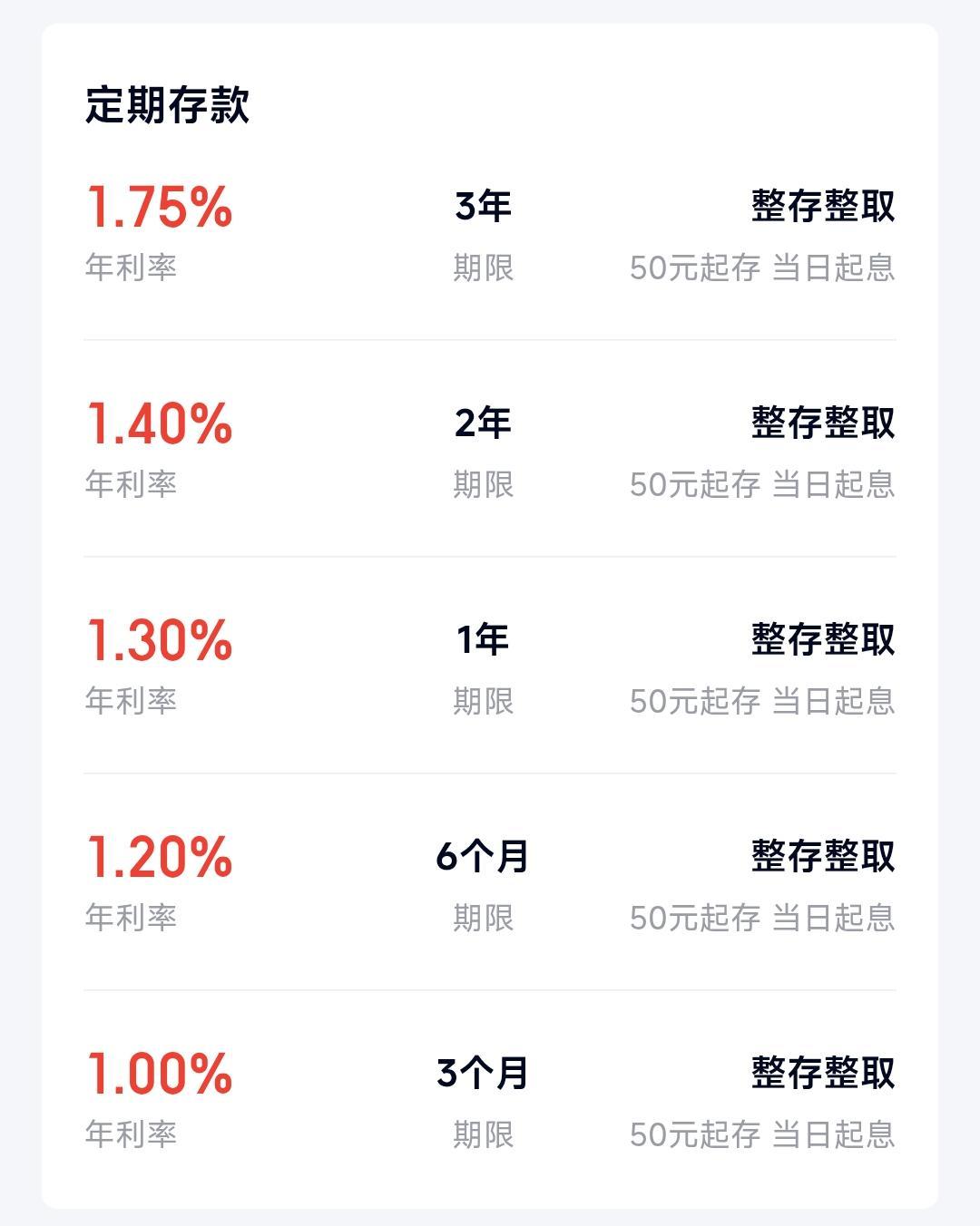 类似调整并非个例。据不完全统计,中信百信银行、苏商银行、中关村银行等多家机构已不再提供5年期定期存款产品,部分银行甚至下架了3年期产品。