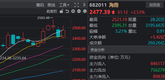 此外,本身偏情绪博弈、相对不看消息面的海南板块(或称海峡两岸概念)在刚复牌的合富中国再度涨停的影响下震荡走强,大致完成了对昨日的修复。