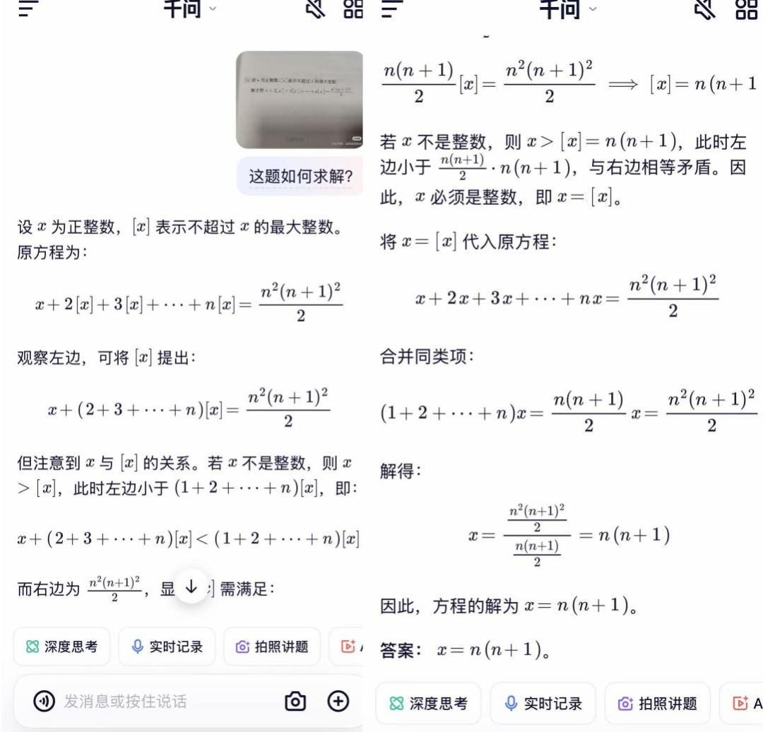 对于家长来说,千问也是个得力助手。上传一道七年级数学题,它不仅能给出正确答案,还会提供详细的解题步骤。