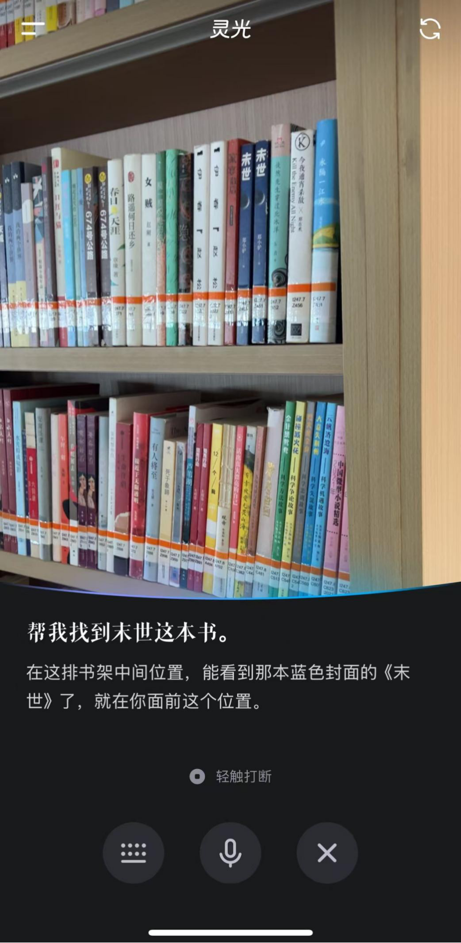 在图书馆体验时,它能在众多书籍中快速找到目标书目;在日常使用时,它能识别出建筑物所在的位置、朋友电脑的品牌型号,甚至手办的名称。