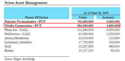 除了软银和段永平外,亿万富翁Peter Thiel旗下的对冲基金也在三季度清空了53.7万股英伟达股票。同时,全球最大对冲基金桥水也大砍了英伟达65%的仓位。此外,电影《大空头》的原型人物Michael Burry正在做空英伟达,其旗下的Scion基金针对英伟达的看跌期权名义价值达1.86亿美元。