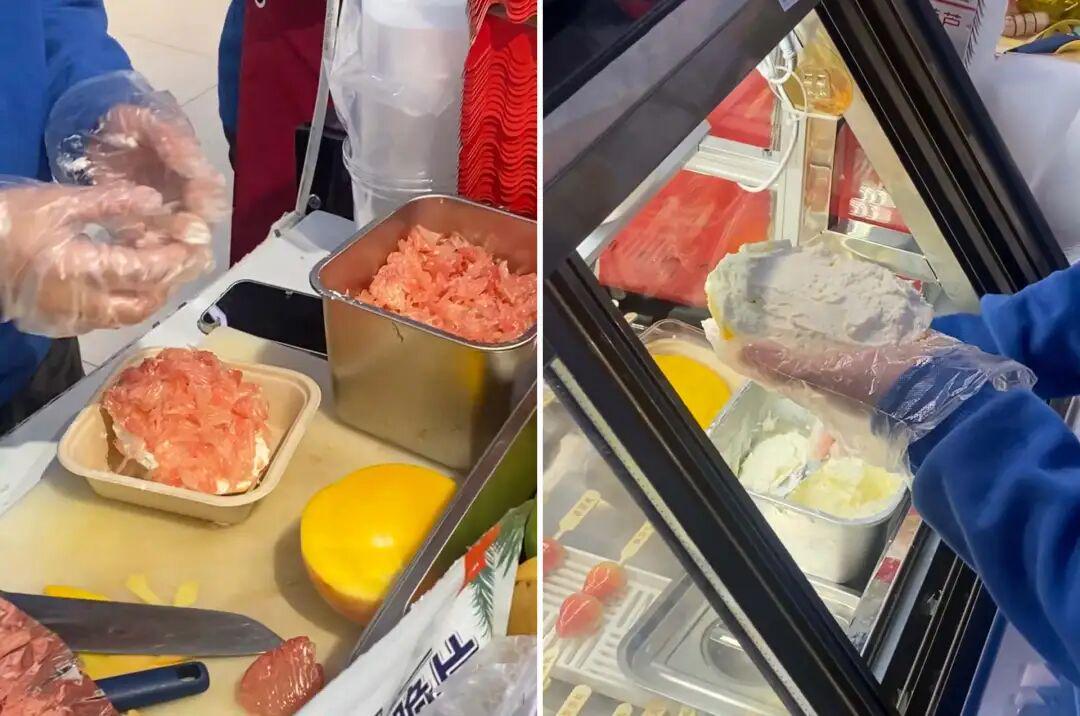 杭州某店主因日销固体杨枝甘露引发关注,其回应称实际日营收约1万元(17元/份,日均400-500单),但制作过程异常辛苦:“每天睁眼就是削芒果,睡眠不足4小时,小票打印机几乎不停运转。”