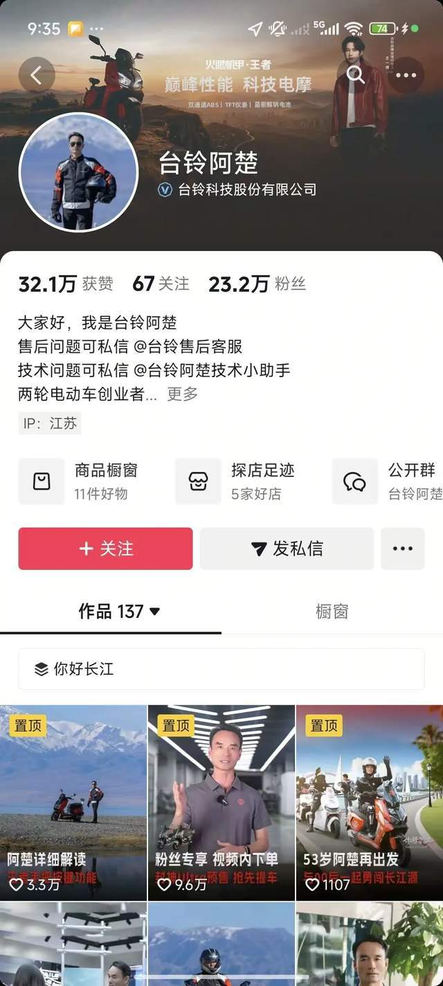创始人孙木楚更亲自下场直播,这位50多岁的企业家展现惊人活力:2025年8月带队在41℃高温下骑行至重庆吃火锅,此前还曾与00后团队穿越3833公里无人区,在零下30℃的东北冰面测试车辆性能。其个人账号“台铃阿楚”两年积累23.2万粉丝,单月直播交易额突破2388万元。