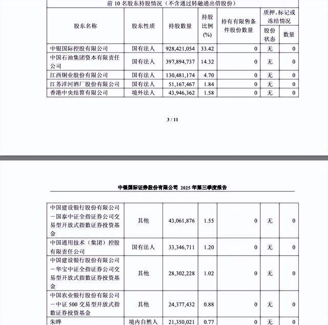 值得一提的是,因自身经营发展需要,江铜股份计划于2025年8月28日至2025年11月27日减持中银证券不超8334万股,占公司总股本的3%。拟减持股票系江铜股份于公司IPO前取得,截至三季度末,江铜股份持有中银证券1.31亿股,占公司总股本的4.7%。