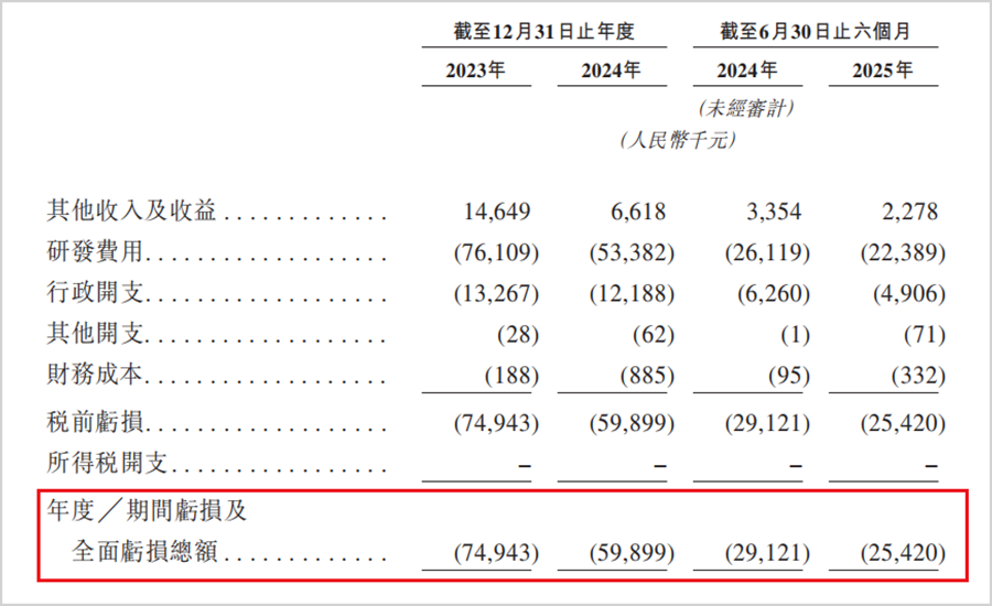 然而,随着核心产品进入耗资巨大且周期漫长的临床试验阶段,时迈药业面临的挑战愈发凸显。由于没有产品商业化收入,公司主要依赖投资收益和外部融资维持运营。招股书显示,2023年至2025年6月底(简称:报告期),时迈药业的主营业务收入均为0,只有零星的其他收入,相应的净亏损分别为0.75亿元、0.60亿元和0.25亿元。两年半的时间里亏损超过1.6亿元,从成立至今更是累计亏损近5亿元。
