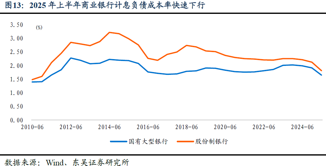 2025年至2026年存款“搬家”或加快银行负债重定价、缓和银行净息差下行压力。在保持合理利率比价关系的政策引导下,我们预计银行净息差或已趋稳,2025年下半年内至2026年存款开启重定价周期或推动银行净息差稳中回升。根据我们此前在专题报告《起底存款“搬家”:储蓄进入股市仍在起步》中提及,2022年至2023年是存款定期化的高峰,且新发存款以3年期定期存款为主力期限品种,随着2025年至2026年高息且长久期的定期存款进入到期高峰,存款“活期化”将导致银行迎来密集的存款利率重定价,也由此成为推动银行净息差稳中回升的动力。