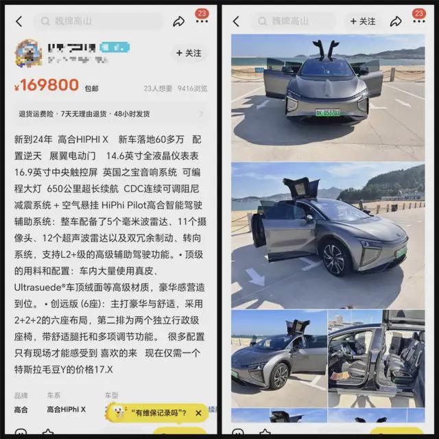 在闲鱼、小红书等平台,"73万高合HiPhi X现价18万""极越01原价30万现8.9万落地"的转让信息随处可见。这些车辆来源多为倒闭品牌原4S店员工或库存清理商,他们以"清仓回血"为目的,将车辆直接推向终端市场。